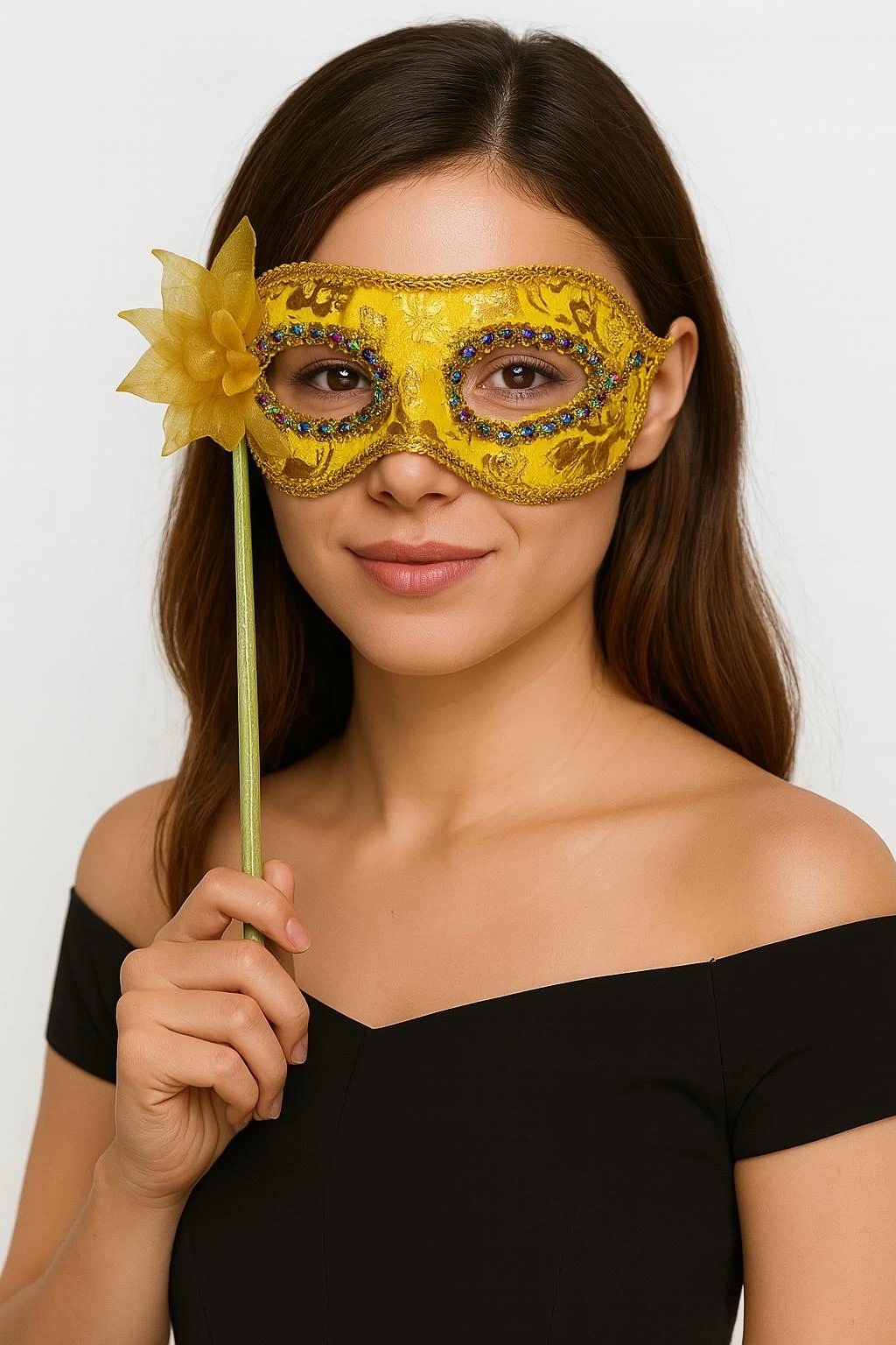 Gizem ve şıklığı bir arada sunan Lüks Taşlı Saplı Maskeli Balo Maskesi, özel davetlerde, maskeli balolarda, partilerde ve kostüm etkinliklerinde göz alıcı bir tarz yakalamanızı sağlar. Zarif tasarımı, parıltılı taş süslemeleri ve gösterişli çiçek detayıyla öne çıkan bu maske, el tutmalı sapı sayesinde rahat kullanım imkânı sunar.