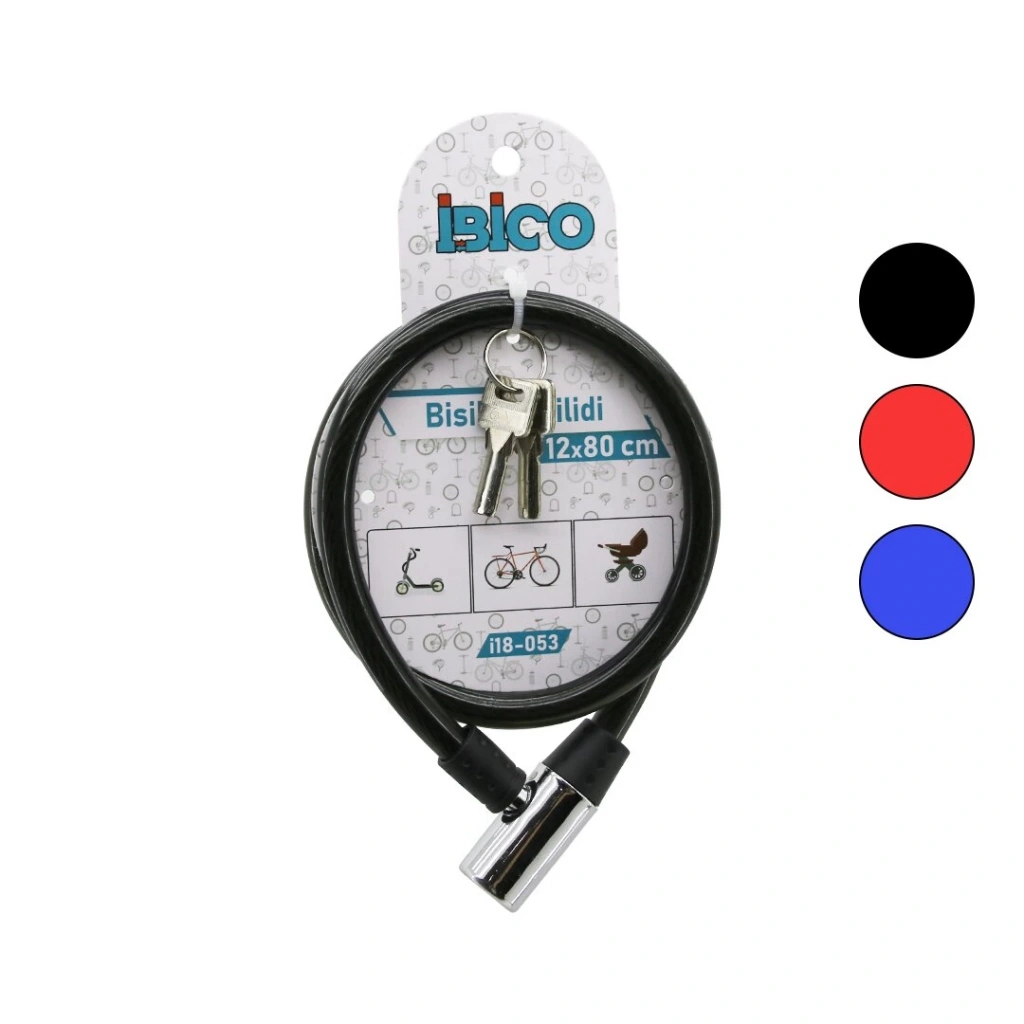 ANAHTARLI PLASTİK KAFA BİSİKLET KİLİT ÇELİK TEL RENKLİ KILIF 12MMX80CM (4597)