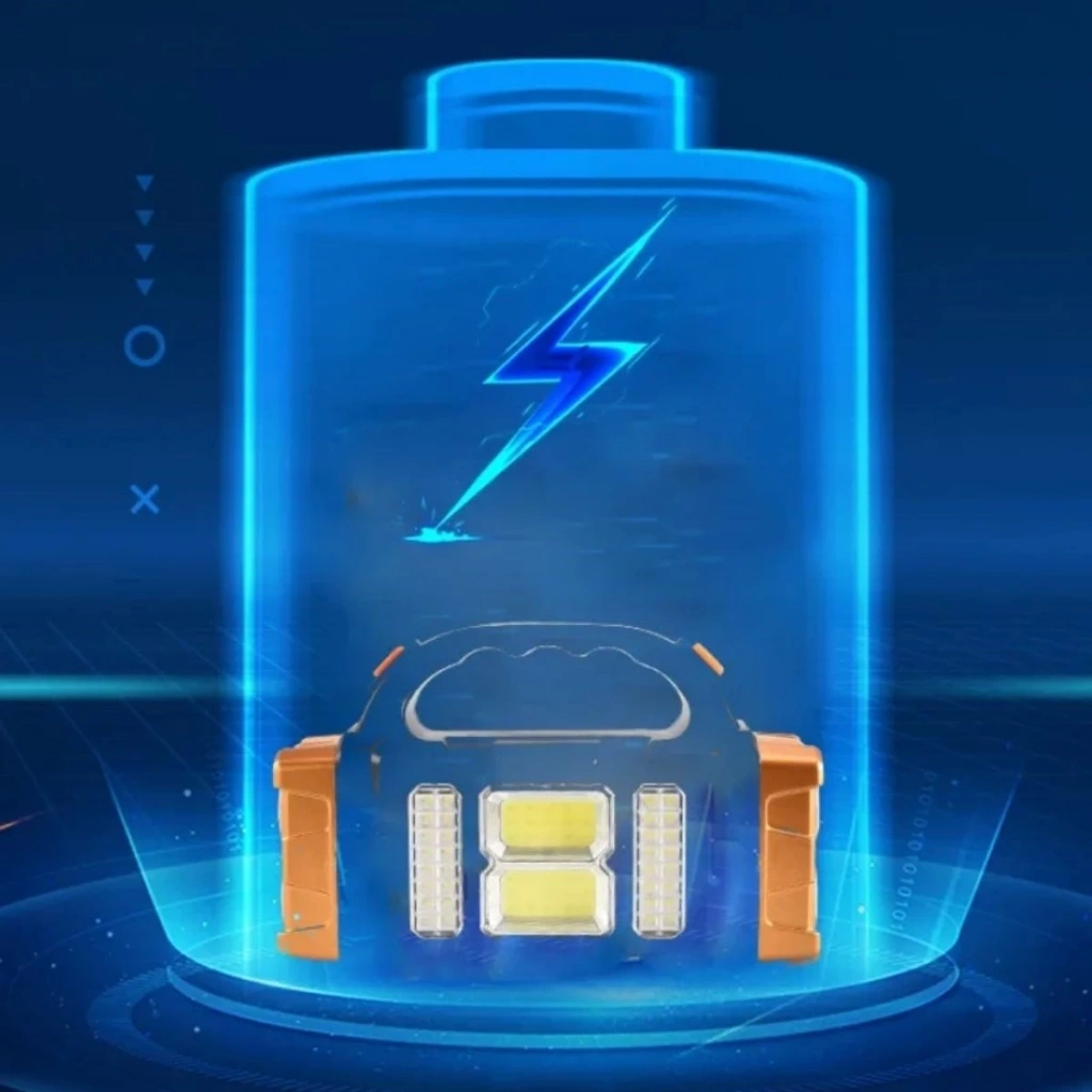 Solar ve USB Şarjlı LED + COB El Feneri | 1500 mAh Şarjlı Taşınabilir Çalışma Işığı-Su Geçirmez