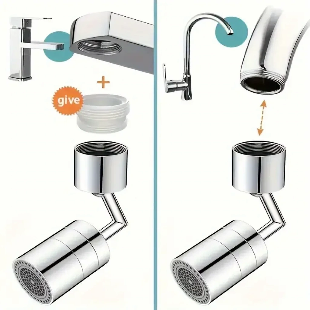 360° Dönebilen Musluk Aeratörü - Sıçramaya Karşı Koruyucu, Mutfak & Banyo Lavabo Bağlantısı, Su Tasarruflu Adaptör, Lüks Köpük Yapıcı için Evrensel Uzatma Anti-Sıçrama Özelliği ile