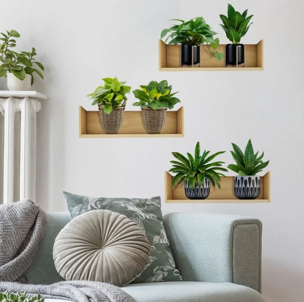 Paket içeriği: 3 sayfa (ruloya şeklinde) : Raflı Bitki Tasarımlı Yapışkanlı Sticker 20*30 cm